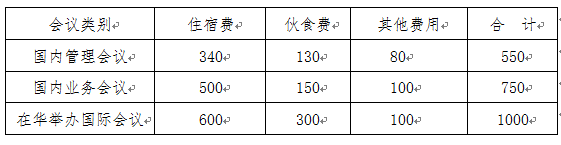 (四)国内业务会议如邀请个别外国专家参加的,参会外国专家食宿标准可参照在华举办国际会议标准执行。